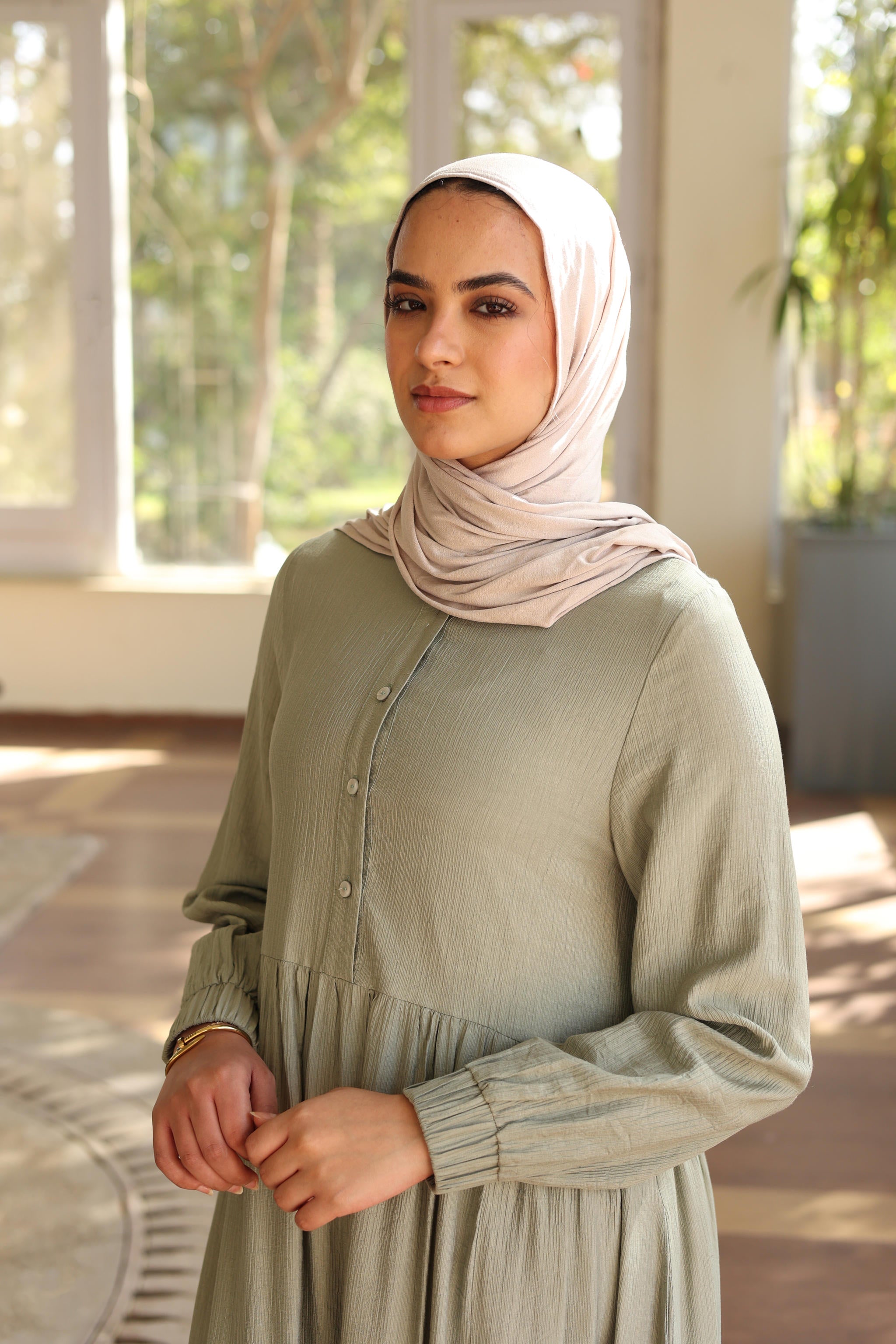 Effortless elegance in a relaxed silhouette. This flowing wide dress features subtle texture throughout, crafted in a sophisticated olive tone that complements any complexion. Perfect for warm weather styling, the generous cut ensures comfort without sacrificing grace. Pair with minimal accessories for understated sophistication.