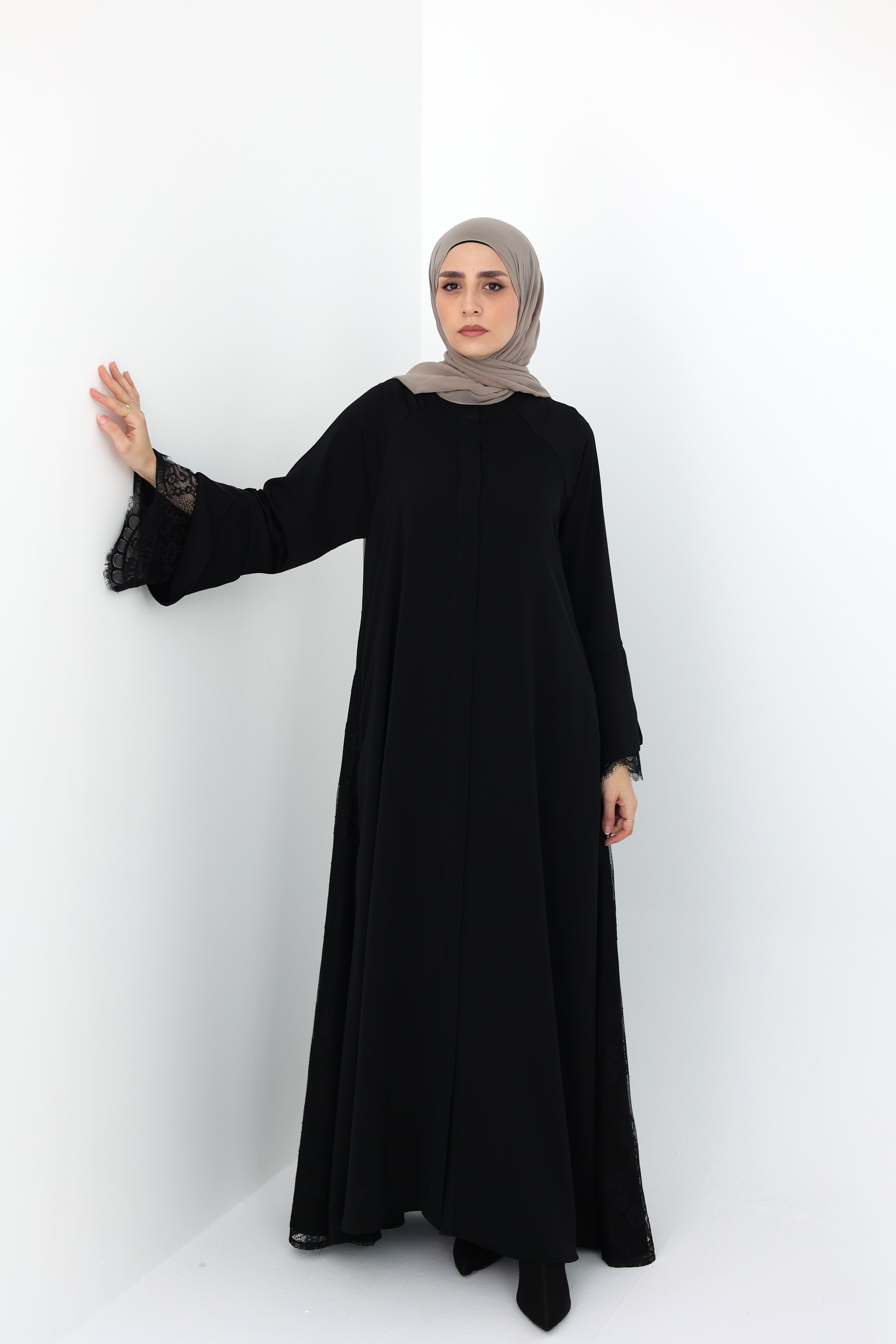 flowy abaya with lace detail