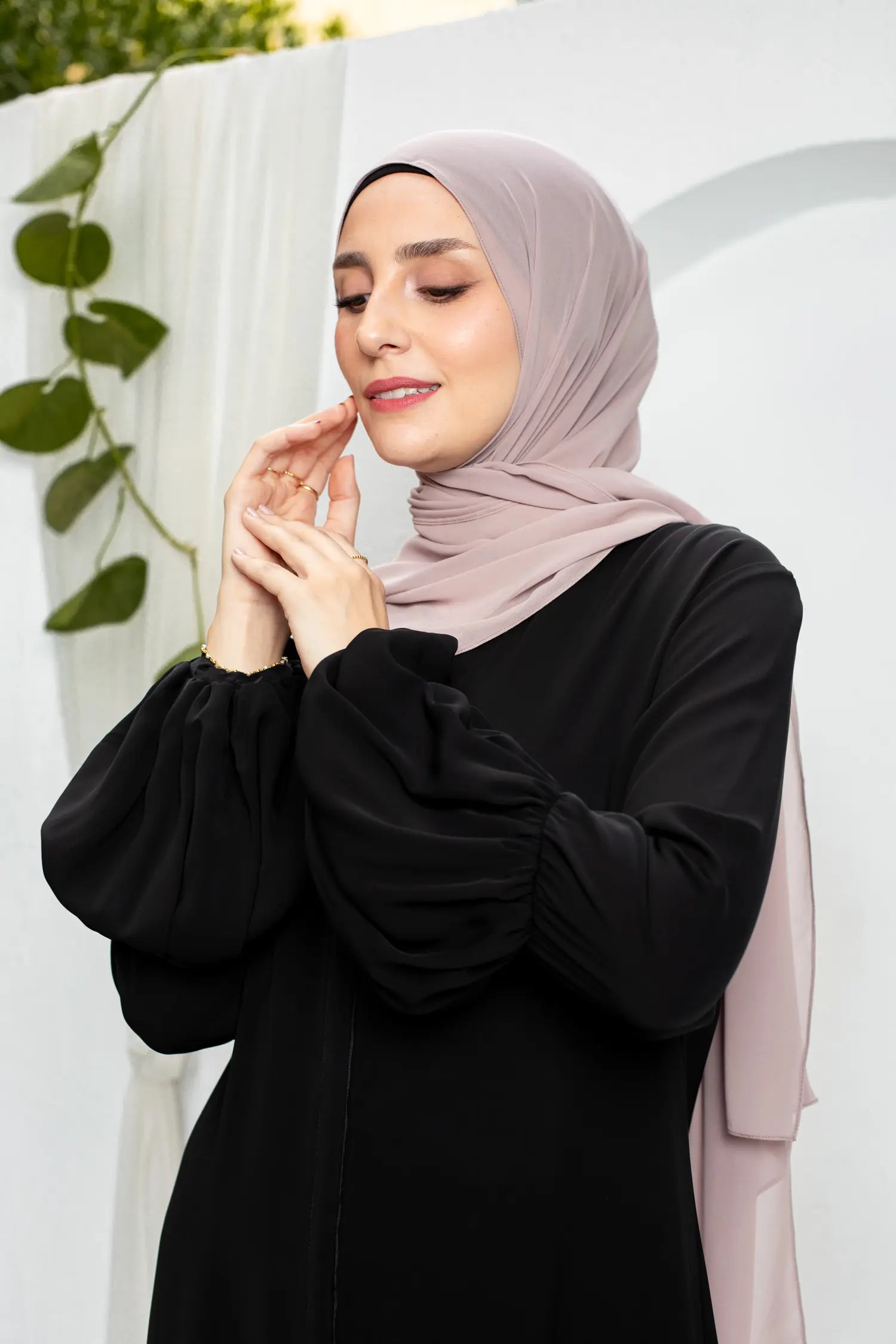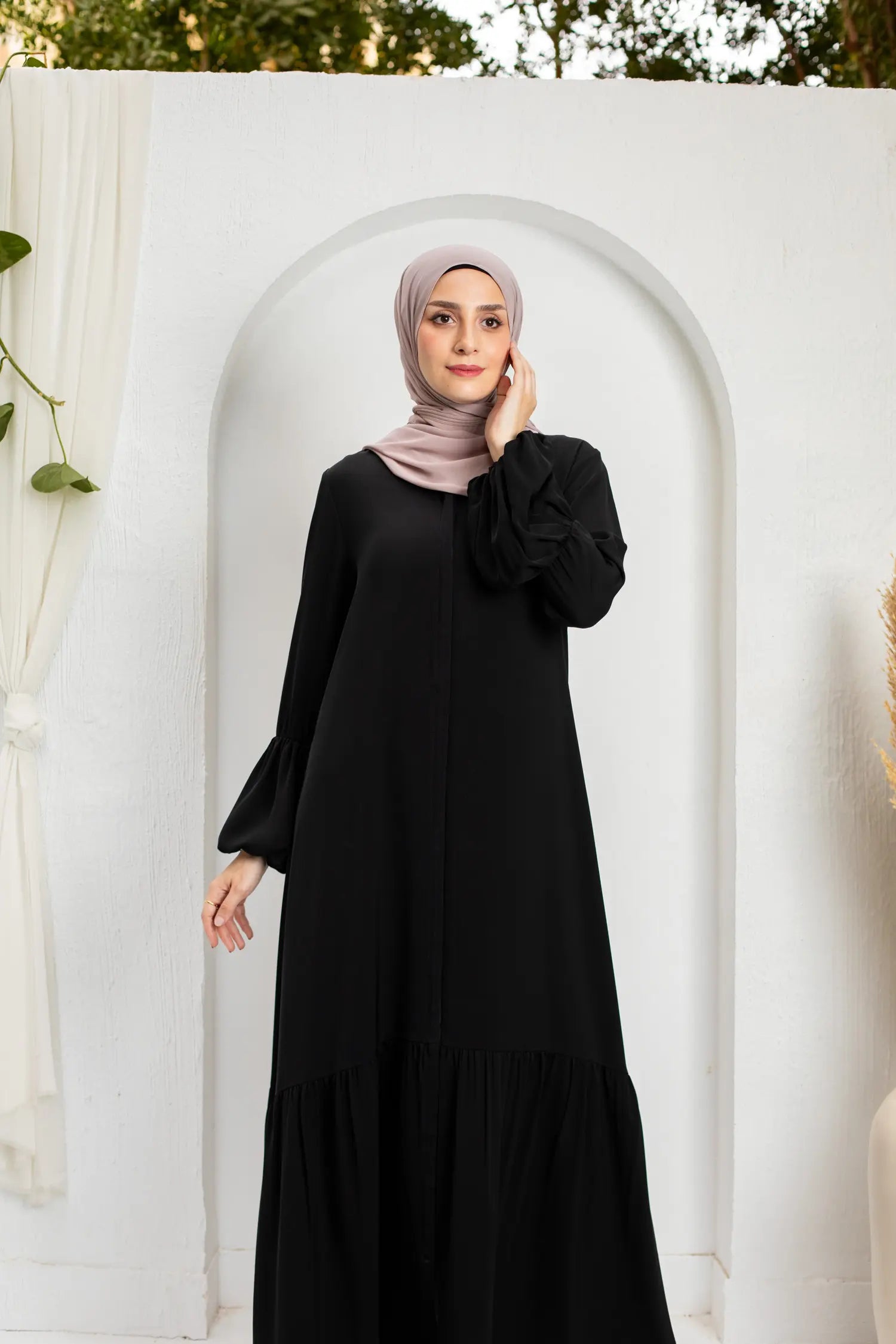 Silk abaya with puffy sleeves