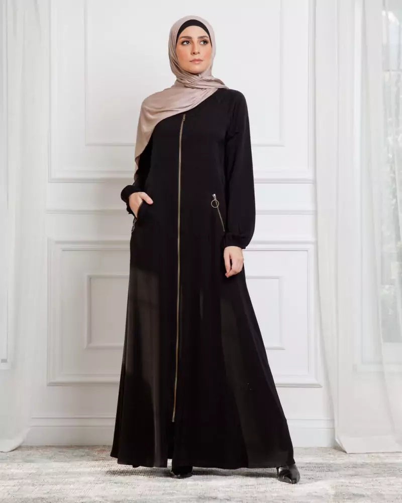 Tulip Abaya with Closh cut and Zipper - Black scarf included